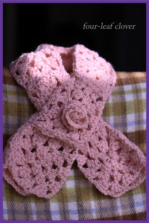 まだモチーフは残っていたので、横1列縦8枚を接いだプチマフラーも作りました。