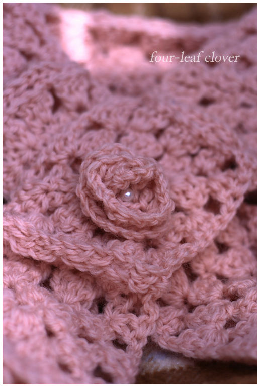 モチーフの真ん中の穴を少し広げてまつり、ボタン穴代わりにしてみました。