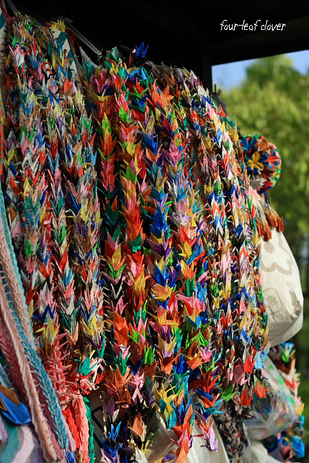 Ⅲ 神社ではたくさんの千羽鶴が掛けられていました。